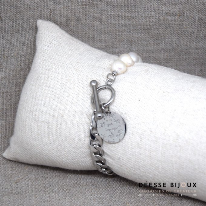 Bracelet chaine avec pierre noir, bleu ou blanc